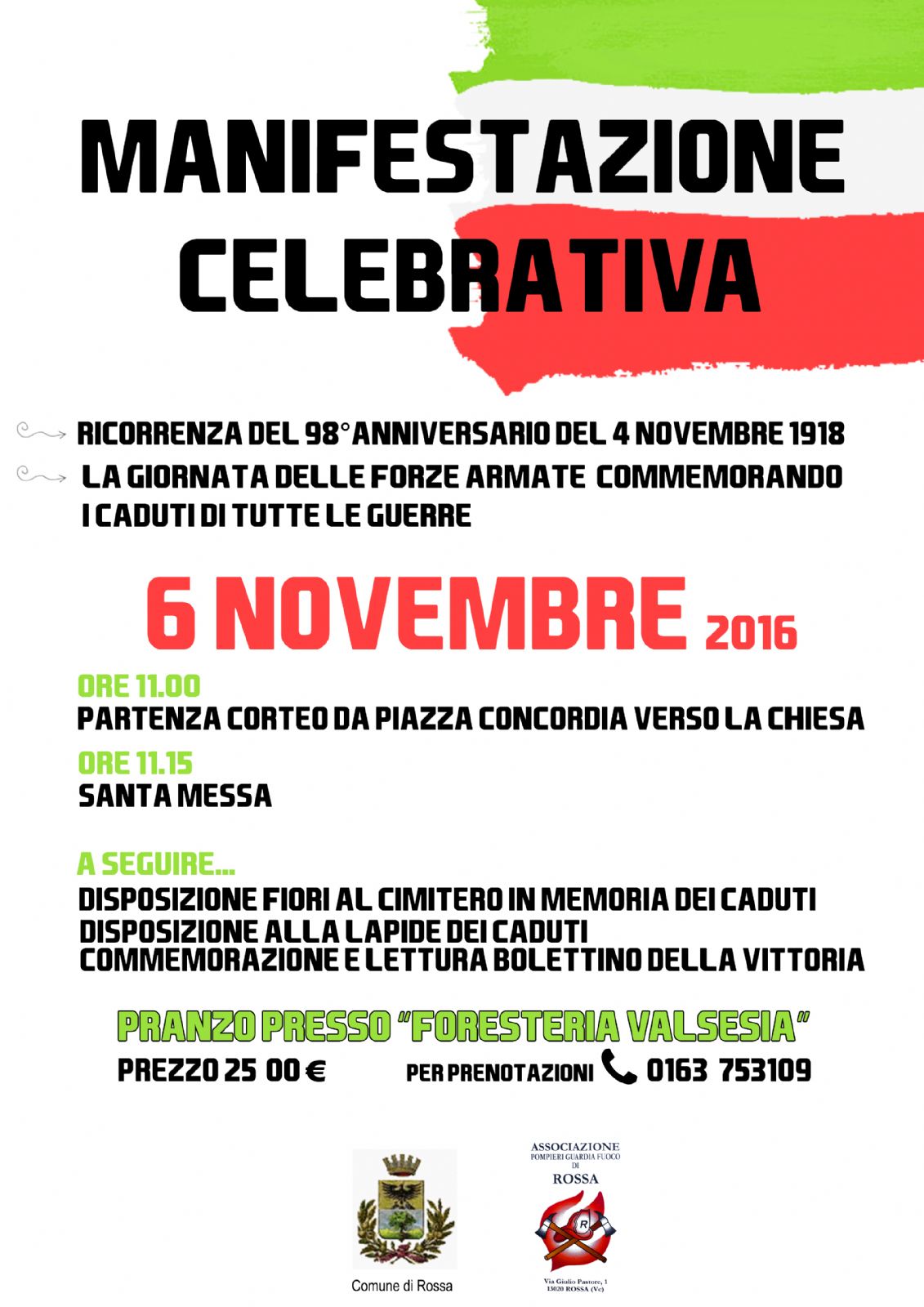 PER LA RICORRENZA DEL 98° ANNIVERSARIO DEL 4 NOVEMBRE 1918 E LA GIORNATA DELLE FORZE ARMATE COMMEMORANDO I CADUTI DI TUTTE LE GUERRE.